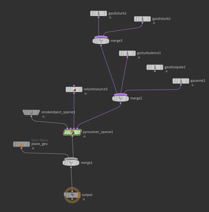 Before the plane crashes into the ocean, it flies and glides in the air, during which time it emits a smoke trail which I’m tackling next. With Houdini 18, I have never tried the new Pyro Sparse Solver so I plan to try it out. The last time I did something with Pyro was in Houdini 17.5. So after doing some research, I found out that for flames, the attribute to rasterize Houdini use for input is “burn”, but for a smoke trail, it is still “density”.
