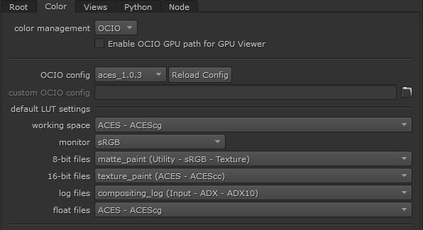 I should have done this earlier when I started, but now, rather late than never. To set up ACES, I changed the properties in the color tab of Nuke to ‘OCIO’ and the colorspace is