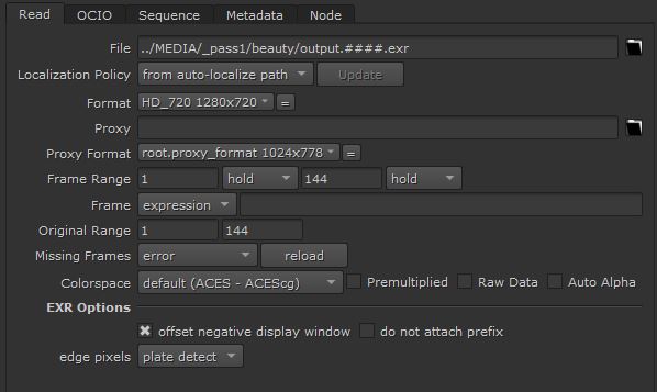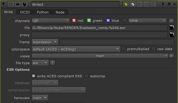 In my Nuke script, I adjusted the project settings to go with ACES, and change the settings for my read node (input) and write node (output) to conform to ACES.
